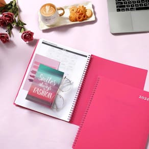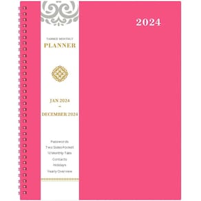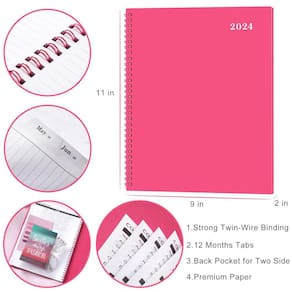 Agenda mensal 2024 — Agenda mensal 2024, janeiro de 2024 a dezembro de 2024, agenda de 12 meses, 9" x 11", agenda mensal com abas e bolso, contatos e senhas, papel grosso, encadernação de dois fios — Romantic Pink da Artfan