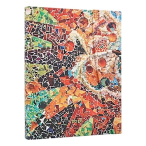 O uso de mosaicos coloridos e formas orgânicas por Antoni Gaudí criou padrões excepcionais em suas esculturas por toda Barcelona. Celebramos a visão de Gaudi com a reprodução de um sol em mosaico no teto da Sala Hipostila do Parque Gell, ao lado das linhas abstratas de suas chaminés no edifício Casa Milà. Paperblanks são produtos que inspiram a criatividade, fortalecem a expressão e celebram momentos especiais. Uma homenagem à arte e à cultura, nossa linha de cadernos e estojos criativos desperta a imaginação ao oferecer uma conexão com artistas e movimentos culturais de todas as épocas e regiões. Expressão não tem limites com Paperblanks. Medida 18x23 Marca: Não Informado