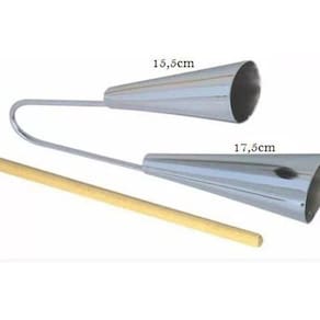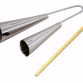 - agogô duplo grande cromado. - fabricante: torelli - modelo: to-016 - acompanha baqueta de madeira.