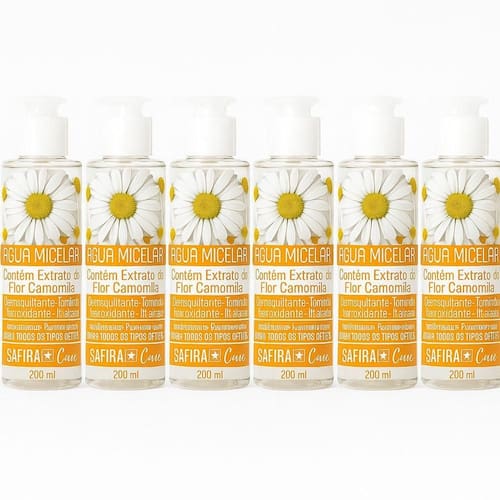 Limpeza completa e suave para uma pele mais saudável e radiante!A Água Micelar Demaquilante Safira 100ml é ideal para remover impurezas, oleosidade e maquiagem com delicadeza e eficiência. Sua contém extrato de camomila, que acalma e suaviza a pele, além de oferecer ação antioxidante, hidratante e tonificante.