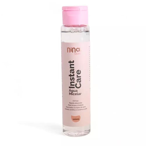Características principais: Tecnologia Micelar : Contém micelas que capturam e removem impurezas, maquiagem e excesso de oleosidade sem agredir a pele. Fórmula suave : Livre de álcool e parabenos, é adequada até para peles sensíveis. Ação hidratante : Ajuda a manter a pele macia e equilibrada, evitando o ressecamento. Efeito tonificante : Promove uma sensação de frescor e prepara a pele para receber outros produtos de cuidados ou maquiagem. Uso prático e rápido : Não precisa de enxágue, sendo ideal para rotinas aceleradas. Benefícios: Limpeza profunda : Remove maquiagem, incluindo produtos à prova de água, e resíduos acumulados ao longo do dia. Cuidado delicado : Preserva a barreira natural da pele, deixando-a limpa e saudável sem causar irritações. Pele revigorada : Sensação imediata de frescor e leveza após o uso. Fácil de usar : Um único produto que substitui diversos passos da rotina de limpeza. Modo de uso: Aplique água micelar em um disco de algodão. Passe suavemente sobre o rosto, olhos e lábios, sem esfregar. Repita o processo até que o algodão saia limpo. Não é necessário enxaguar, mas, se desejar, pode complementar com um hidratante ou protetor solar. A Água Micelar Instant Care da Nina Makeup é um verdadeiro aliado para quem busca praticidade, eficácia e cuidado em um único produto. Perfeita para uso diário, ajuda a manter a pele limpa, hidratada e com aspecto saudável em qualquer momento do dia.