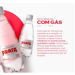 Água Mineral Alcalina PRATA com gás PET 510ml 24 unidades Experimente a refrescância incomparável da Água Mineral Prata Com Gás Pet. Originada de poços profundos em uma região vulcânica de complexidade geológica, essa água alcalina bicarbonatada é sinônimo de qualidade e pureza há mais de 125 anos no mercado. Com profundidades que chegam a 120 metros, as fontes da Água Prata são exploradas de forma responsável e sustentável, preservando os mananciais e protegendo o meio ambiente. E o resultado não poderia ser outro: uma água mineral de sabor suave e refrescante, com bolhas delicadas que deixam uma sensação única na boca. A Água Mineral Prata Com Gás Pet é a escolha perfeita para quem busca uma opção saudável e saborosa de hidratação. Além de ser uma água mineral naturalmente gaseificada, ela ainda possui propriedades alcalinas e bicarbonatadas que auxiliam na regulação do pH do organismo. Com sua embalagem prática em PET, a Água Mineral Prata Com Gás é ideal para ser levada para onde você quiser, seja para o trabalho, academia ou passeios ao ar livre. Garanta já a sua e experimente a sensação única de se hidratar com a melhor água mineral do mercado Bebida não Alcoólica.Contém 12 unidades de 510ml.Água Mineral Nacional. Marca: Águas Prata