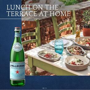 Reverenciada como o Champagne das águas minerais, a água italiana S. Pellegrino é conhecida em todo o mundo como simbolo de vida italiano Nazionalitá . Sua fonte está localizada a 70 km de Milão, na cidade de S.Pellegrino Terme, região da Lombardia, norte da Itália. Começou a ser engarrafada em 1899 e décadas depois vem se consolidando como a água preferida dos grandes Chefs e Sommeliers do mundo, além de ser parceira dos melhores prêmios de gastronomia do mundo. Com sua perlage borbulhas delicadas e equilibradas, acompanha e valoriza vinhos tintos e pratos a base de carne e molhos intensos.