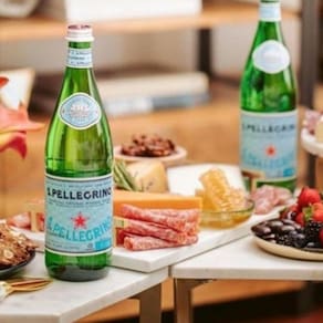 Reverenciada como o Champagne das águas minerais, a água italiana S. Pellegrino é conhecida em todo o mundo como simbolo de vida italiano Nazionalitá . Sua fonte está localizada a 70 km de Milão, na cidade de S.Pellegrino Terme, região da Lombardia, norte da Itália. Começou a ser engarrafada em 1899 e décadas depois vem se consolidando como a água preferida dos grandes Chefs e Sommeliers do mundo, além de ser parceira dos melhores prêmios de gastronomia do mundo. Com sua perlage borbulhas delicadas e equilibradas, acompanha e valoriza vinhos tintos e pratos a base de carne e molhos intensos.