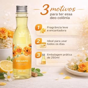 A Água Perfumada Deo Colônia Phytoderm Encanto 250ml é perfeita para o uso diário, seja para um passeio casual, um encontro com amigos ou para realçar sua presença em momentos especiais. Sua fragrância versátil e agradável a torna ideal para qualquer estação, proporcionando um toque de leveza e sofisticação em todas as ocasiões.