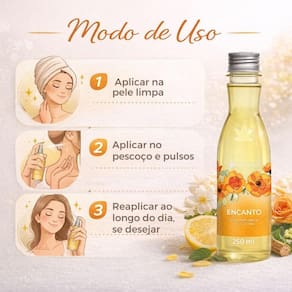 Para uma melhor experiência, aplique a Água Perfumada Deo Colônia Phytoderm Encanto 250ml sobre a pele limpa e seca, preferencialmente após o banho. Borrife a fragrância nas áreas de maior circulação sanguínea, como pulsos, pescoço e atrás das orelhas, para prolongar a fixação e a projeção do perfume. Evite esfregar a pele após a aplicação para não alterar a fragrância. Pode ser reaplicada ao longo do dia para manter a sensação de frescor e bem-estar.