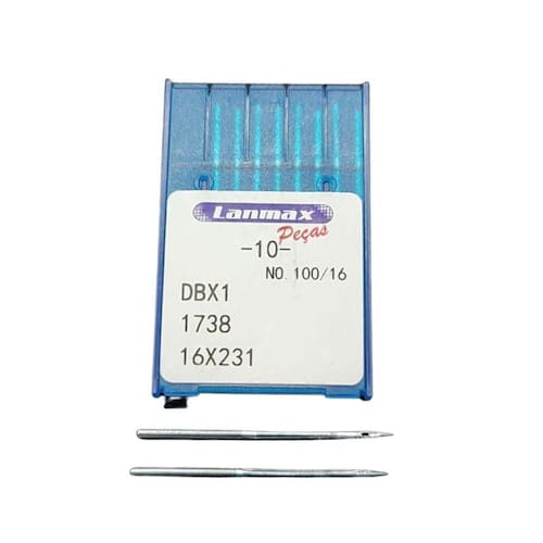 Produto: Agulha para Máquina de Costura Reta Industrial Cabo Fino DBX1 Código: DBX1 Categoria: Agulhas de Máquinas Industriais Quantidade por Pacote: 10 unidades Material: Aço niquelado Compatibilidade: Máquinas de costura Jack, Singer e outras similares Uso Ideal: Costura reta industrial e bordado Aplicações: Tecido, couro macio, camisas, calças, roupas variadas Exemplos de Aplicações: Roupas, bancos de automóvel, calçados esportivos, materiais revestidos, películas Equivalencia: DBX1 / 1738 / 1515 / 16X231 / 287WH.