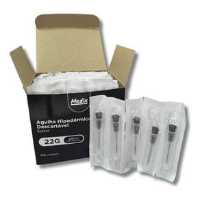 Agulha Hipodérmica Descartável Medix 22G 1 25x0,70mm Cinza: Excelência em Aplicações Médicas A Agulha Hipodérmica Descartável Medix 22G 25x0,70mm Cinza é o dispositivo estéril essencial para profissionais da saúde que priorizam precisão, segurança e o conforto do paciente. Projetada para a administração de soluções e medicamentos, bem como para a aspiração de fluidos em análises clínicas, esta agulha da renomada marca Medix eleva o padrão dos seus procedimentos. Qualidade, Conforto e Versatilidade Garantidos: Design Otimizado para Suavidade: Com cânula fabricada em aço inoxidável de alta qualidade e um bisel trifacetado, a agulha Medix proporciona um deslize suave e uma eficiente na pele, minimizando o desconforto e o trauma. Identificação Clara: O canhão na distintiva cor Cinza permite a identificação rápida e segura do calibre 22G 25x0,70mm , seguindo padrões universais de cores para evitar erros. Compatibilidade Universal: Equipada com conectividade para seringas de bico Luer Slip ou Luer Lock, esta agulha descartável oferece máxima versatilidade e adaptação a diversos instrumentos, otimizando o fluxo de trabalho em qualquer ambiente clínico. Higiene e Segurança Insuperáveis: Cada agulha hipodérmica descartável é cuidadosamente embalada individualmente em papel grau cirúrgico e laminado de polipropileno com abertura em pétala, garantindo a esterilidade e a segurança em cada aplicação. O produto é esterilizado em Óxido de Etileno O.E. . Indicações Abrangentes para o : Esta agulha 22G é ideal para diversas vias de administração e procedimentos, incluindo: Injeções intradérmicas, intramusculares, subcutâneas e intravenosas. Aspiração de fluidos para análises clínicas. Modo de Uso Seguro Recomendação : Para garantir a máxima eficácia e segurança, utilize a agulha em ambiente adequado e sob condições assépticas. Após preparar e realizar a assepsia do local de punção, verifique a integridade da embalagem e o prazo de validade. Remova o produto da embalagem, acople à seringa, realize o procedimento e descarte imediatamente a agulha em um recipiente apropriado para materiais perfurocortantes, conforme as normas de biossegurança. Produto de uso único, proibido reprocessar ou reutilizar. Especificações Técnicas: Nome: Agulha Hipodérmica Descartável Marca: Medix Cor do Canhão: Cinza Referência: 22G 1 25x0,70mm - Também conhecida como agulha 25x7 Material: Aço Inoxidável Cânula Esterilização: Óxido de Etileno Lubrificada: Com silicone Bisel: Trifacetado Conexão: Luer Slip ou Luer Lock Apresentação: Caixa com 100 unidades Dimensões da Embalagem: 11cm c x 11cm l x 9cm a Peso da Embalagem: 110g Validade: 5 anos após a data de esterilização. Registro ANVISA: 80495510095 Certificação: Certificada pelo INMETRO Invista na agulha Medix 22G para procedimentos com o mais alto nível de confiabilidade e segurança.