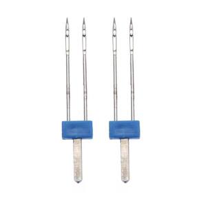 Agulha dupla para máquinas domésticas Distância entre agulhas: 4 mm Tamanho da agulha: N 11 Ideal para costuras decorativas e reforçadas Conteúdo: 1 unidade