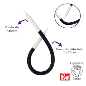 - Marca: Prym - Modelo: Agulha para Trança Yoga Flexível - Referência: 191 113 - Contém 01 unidade - Cor: Azul - Agulha de 7,0mm - Flexivelmente dobrável em qualquer formato - várias funções práticas - Ergonômica cabe perfeitamente nas mãos - Tamanho: 25cm - Composição: Plástico de alto desempenho