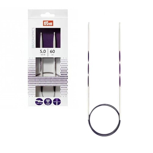 Agulhas Circulares Ergonômicas para Tricô Prym 5.00mm 60cm Agulhas Circulares Ergonômicas para Tricô Prym 5.00mm 60cm, tornam o tricô mais fácil, confortável e bonito. São feitos de plástico de alta qualidade e alta performance e são facilmente flexíveis, ou seja, vibram com a malha. São adequadas para iniciantes graças à ponta em forma de lágrima, porque a orientação do fio é muito mais fácil e o fio não escorrega da ponta tão rapidamente. - Marca: Prym- Modelo: Agulhas Circulares - Referência: 2156-06- Contém 01 unidade- Tamanho: 5.0mm- Transição de seção transversal redonda para triangular- Cabo de aço estável e muito fino sem efeito espiral- Composição: Plástico de alto empenho