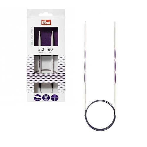 Agulhas Circulares Ergonômicas para Tricô Prym 5.00mm 60cm Agulhas Circulares Ergonômicas para Tricô Prym 5.00mm 60cm, tornam o tricô mais fácil, confortável e bonito. São feitos de plástico de alta qualidade e alta performance e são facilmente flexíveis, ou seja, vibram com a malha. São adequadas para iniciantes graças à ponta em forma de lágrima, porque a orientação do fio é muito mais fácil e o fio não escorrega da ponta tão rapidamente.