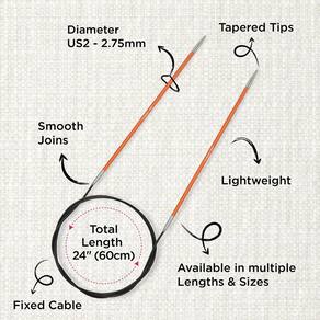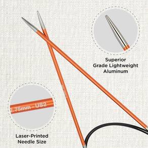 KNIT PRO KP47124 Zing: Pinos de tricô circulares fixos: 80 cm x 2,75 mm, metal, 2,75, laranja