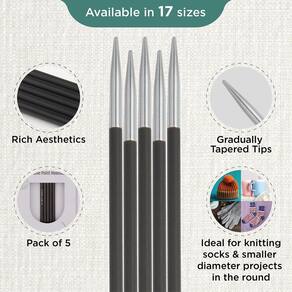 - Estética luxuosa: a cor preta hipnotizante das agulhas e as pontas de latão brilhantes resumem pura elegância e sofisticação. As agulhas KnitPro Karbonz Double Pointed, com seu rico apelo estético, tornam-se uma escolha indispensável entre tricotadores experientes. As agulhas são um encanto para os olhos e para sua caixa de artesanato.