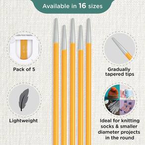 - Tricô fácil na rodada: agulhas de ponta dupla são convenientes quando se trata de tricô redondo. Você pode tricotar itens como chapéus, luvas, meias etc. sem ter que costurá-los mais tarde nas costuras. As agulhas de ponta dupla Zing são uma escolha prática quando o projeto é muito pequeno para ser tricotado usando uma agulha circular.