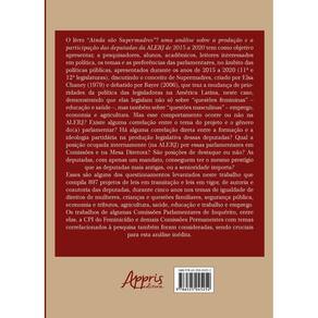 O livro “Ainda são Supermadres”? uma análise sobre a produção e a participação das deputadas da ALERJ de 2015 a 2020 tem como objetivo apresentar, a pesquisadores, alunos, acadêmicos, leitores interessados em política, os temas e as preferências das parlamentares, no âmbito das políticas públicas, apresentados durante os anos de 2015 a 2020 (11ª e 12ª legislaturas), discutindo o conceito de Supermadres, criado por Elsa Chaney (1979) e debatido por Bayer (2006), que traz a mudança de prioridades da política das legisladoras na América Latina, neste caso, demonstrando que elas legislam não só sobre “questões femininas” – educação e saúde –, mas também sobre “questões masculinas” – emprego, economia e agricultura. Mas esse comportamento ocorre ou não na ALERJ? Existe alguma correlação entre o tema do projeto e o gênero do(a) parlamentar? Há alguma correlação direta entre a formação e a ideologia partidária na produção legislativa dessas deputadas? Qual a posição ocupada internamente (na ALERJ) por essas parlamentares em Comissões e na Mesa Diretora? São posições de destaque ou não? As deputadas, com apenas um mandato, conseguem ter o mesmo prestígio que as deputadas mais antigas, ou a senioridade importa? Esses são alguns dos questionamentos levantados neste trabalho que compila 897 projetos de leis em tramitação e leis em vigor, de autoria e coautoria das deputadas, durante cinco anos nos temas de igualdade de direitos de mulheres, crianças e questões familiares, segurança pública, economia e tributos, agricultura, saúde, educação e trabalho e emprego. Os trabalhos de algumas Comissões Parlamentares de Inquérito, entre elas, a CPI do Feminicídio e demais Comissões Permanentes com temas correlacionados à pesquisa também foram consideradas, sendo cruciais para esta análise inédita.