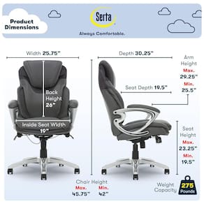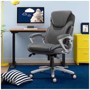 PROFISSIONAL E CONFORTÁVEL Cadeira de secretária ergonómica com almofadas de corpo em camadas e apoios de braços acolchoados TECNOLOGIA AIR LUMBAR As almofadas lombares giram quando você se move para fornecer suporte para as costas e ajudar a melhorar a postura ESTILO EXECUTIVO Couro colado com costura contrastante.Material da çãoMadeira CONFORTO TODO O DIA Alavancas acionadas por cabo no lado do assento oferecem ajustes convenientes de altura e inclinação ROLAMENTO SUAVE Os rodízios de design de múltiplas superfícies e rodas duplas facilitam a movimentação Marca: Não Informado
