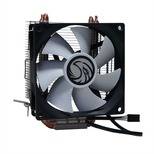 Com 2 heatpipes de cobre e aletas de alumínio, entrega até 35 CFM de fluxo de ar, suportando com facilidade processadores com TDP de até 100W.