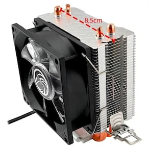 Equipado com 2 tubos heatpipes de cobre de contato direto, acelera a transferência térmica do processador para as aletas de alumínio, suportando até 100W de TDP.