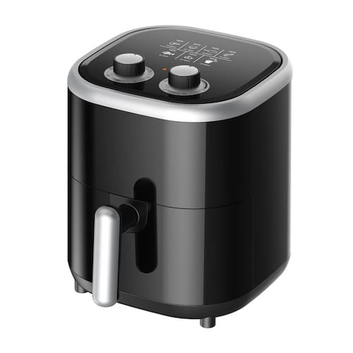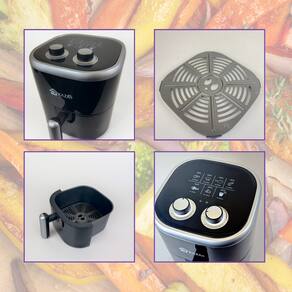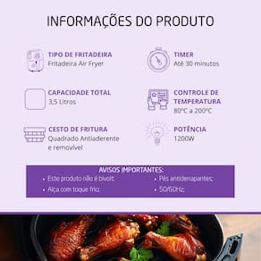 Air Fryer Kaza+ 3,5L, 1200W, temperatura ajustável de 80°C a 200°C, timer de até 30 minutos, cesto removível antiaderente, alça com toque frio e pés antiderrapantes.Porta-fio