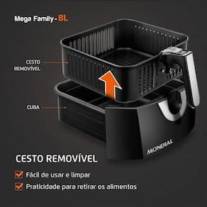 CESTO REMOVÍVEL: Todas as Air Fryers Mondial possuem cesto removível. Com isso, você ganha:
