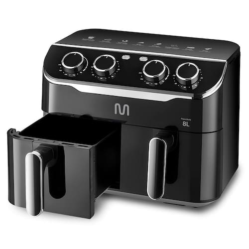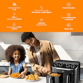 A Air Fryer perfeita para preparar receitas para toda família! Com 2 gavetas independentes de 4L, A Air Fryer 8L da Multi garante maior rapidez e praticidade no preparo de suas receitas, sem interferência de odor e sabor.