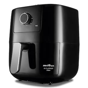 Air Fryer Britânia com capacidade de 3 litros, tecnologia Air Flow, timer de 60 minutos, temperatura ajustável de 80°C a 200°C, cesto removível com revestimento antiaderente e sistema de proteção contra superaquecimento.Porta-fio