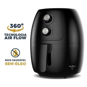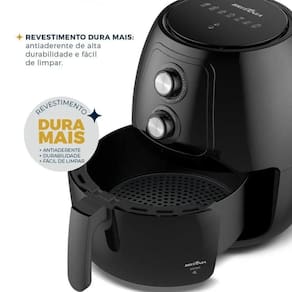 Tecnologia Air Flow 360 para cocção uniforme. Cesto e cuba com revestimento antiaderente. Fundo removível. Base antiderrapante. Sistema de proteção contra sobreaquecimento.Porta-fio