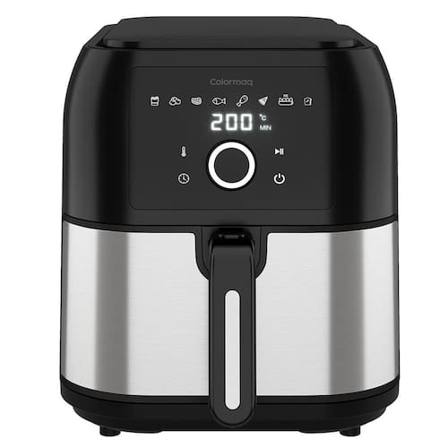 A Airfryer Colormaq oferece praticidade e alta performance com seu cesto removível e antiaderente de 8L, painel digital e controle de temperatura de 80C a 200C. Com 1700W de potência, timer com aviso sonoro, desligamento automático e 8 receitas pré-definidas, garante preparo rápido e fácil.