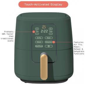Descubra a Air Fryer Digital de 6 litros da Generic com a inovadora Tecnologia TurboCrisp, desenvolvida para cozinhar alimentos de forma rápida e uniforme, usando apenas um mínimo de óleo, reduzindo até 75% da gordura, garantindo refeições mais saudáveis e saborosas. Com 4 funções pré-programadas – fritar, assar, grelhar e reaquecer – você tem versatilidade total para preparar seus pratos favoritos com praticidade. Ajuste a temperatura entre 77°C e 204°C para um controle preciso, adaptando-se perfeitamente a qualquer receita. O design elegante, assinado por Drew Barrymore, traz um toque moderno com detalhes em dourado e a sofisticada cor Verde Erva, que se encaixa harmoniosamente em qualquer cozinha contemporânea. A bandeja e o cesto antiaderentes não contêm PFOA nem PFOS, facilitando a limpeza, que pode ser feita na lava-louças sem complicações. Com potência de 1750 watts, esta air fryer entrega performance rápida e eficiente para que seus pratos fiquem crocantes por fora e macios por dentro. Conta ainda com um display digital sensível ao toque, timer de 60 minutos com desligamento automático para segurança adicional, e controle digital para praticidade no uso diário. Leve, funcional e estilosa, é a escolha ideal para quem busca alimentação saudável sem abrir mão do sabor e da conveniência.