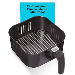 Com capacidade ampla, o cesto antiaderente permite preparar um frango inteiro de uma só vez, ideal para servir grandes porções para a família ou porções individuais.