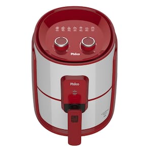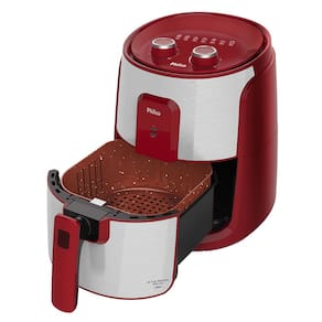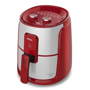 Fritadeira Air Fryer com cesto quadrado, revestimento cerâmico Redstone, seletor de temperatura de 80 a 200°C, timer de 60 minutos com desligamento automático, acabamento em aço inox, base antiderrapante, sistema de proteção contra sobreaquecimento.Porta-fio