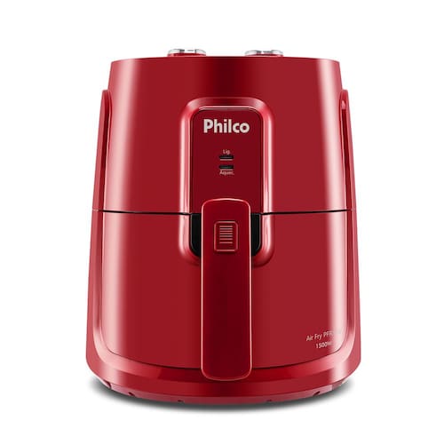 Fritadeira Air Fryer Philco PFR15V Air Flow 4L 1500W. Possui 1500W de potência, seletor de temperatura de 80 a 200°C, timer de 60 minutos, cesto removível com revestimento antiaderente, sistema de proteção contra sobreaquecimento.Porta-fio