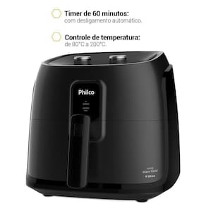 Air Fryer Philco 9L com 2000W de potência, cesto antiaderente Gold, timer de 60 minutos, seletor de temperatura de 80 a 200 graus e tecnologia Air Flow 360°.Porta-fio