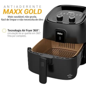 Transforme sua experiência na cozinha com um aparelho que une capacidade, potência e inovação. Prepare suas receitas com mais agilidade e sem complicações com a Air Fryer Philco 9L Maxx Gold Antiaderente 2000W PAF90B!