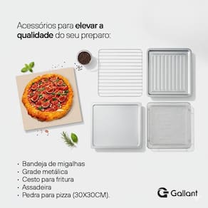 Diferente de outros modelos do mercado, o Gallant acompanha uma pedra para pizza quadrada de 30x30 cm, que garante assados mais uniformes e crocância especial. Vale lembrar: para utilizar a pedra é necessário untá-la antes do uso, potencializando ainda mais o resultado final.
