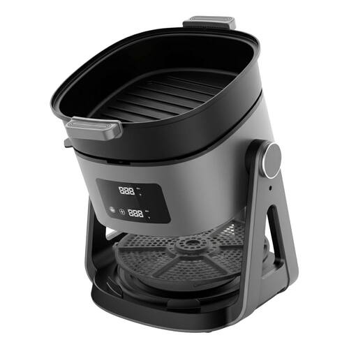 A Air Fryer Reverse 2 em 1 e a solucao pratica para quem quer fritar, grelhar e cozinhar com versatilidade em um unico aparelho. Com capacidade de 5 litros e potencia de 1500W, funciona tanto como fritadeira quanto como panela, oferecendo preparo rapido e uniforme. O cesto em vidro borossilicato com visao 360deg permite acompanhar o preparo dos alimentos em tempo real, enquanto a funcao rotativa possibilita o uso como grelha, ampliando as possibilidades de receitas. Ideal para o dia a dia, combina desempenho, praticidade e design moderno na cor cinza.