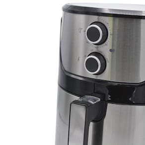 Tecnologia Rapid Air para alimentos crocantes sem adição de gorduras. Cuba grande, revestimento antiaderente e grade removível para fácil limpeza. Acabamento em Inox e design exclusivo. Timer sonoro de 60 minutos com desligamento automático. Seletor de temperatura de 80°C a 200°C.Porta-fio