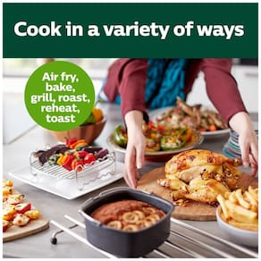 Airfryer Digital Philips Essential Connected XL com capacidade de 6,2 litros, tecnologia Rapid Air, conectividade Wi-Fi, controle pelo app Philips HomeID e compatibilidade com Alexa. Multifuncional: frita, grelha, assa, desidrata e reaquece. Possui 7 programas predefinidos e função manter aquecido.Porta-fio