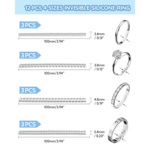 Tamanho de anel, ajustador de tamanho de anel para anéis soltos, pacote com 16, 2 tamanhos, qualquer tamanho, ajustador de anel invisível para anéis soltos, mulheres ou homens, protetores de anel, silicone espiral, conjunto de aperto de anel com pano de polimento, caixa - Qualidade premium e durabilidade: este ajustador de anel para anéis soltos para mulheres ou homens é feito de material TPU de alta qualidade, garantindo que seja macio, flexível e durável. Reutilizáveis e confiáveis, estes tamanhos de anel para anéis soltos mantêm seu anel com segurança no lugar sem causar qualquer irritação. - Versatilidade e ampla aplicação para conjunto de ajustador de tamanho de anel: Este conjunto de ajustador de tamanho de anel se encaixa na maioria dos anéis femininos e masculinos, garantindo um ajuste confortável sem a necessidade de redimensionamento. Mantém suas joias intactas simplesmente selecionando o tamanho apropriado e prendendo ou levantando seu anel. - Desempenho anti-riscos: Estes ajustadores de anel para anéis soltos, também conhecidos como dimensionadores de anel, protetores de anel para mulheres anéis soltos e redimensionadores de anel para anéis soltos, isolam facilmente seu anel de arranhões devido ao atrito quando você manuseia objetos. Macia, invisível e segura para uso diário. - Invisível e confortável: protetores de anel invisíveis para anéis soltos que as mulheres fornecem material TPU macio é transparente e resistente à abrasão, garantindo que seja discreto e confortável. Oferece conveniência e segurança, garantindo que seu anel não seja perdido devido à folga. - Conjunto de aperto de anel: 16 pacotes em 2 tamanhos, e tecido estes espaçadores de anel para anéis soltos femininos podem ser cortados para moldar conforme necessário. Enrole-os ao redor do anel como uma bobina até preencher a lacuna, atuando como protetores de anel para anéis soltos, ajustadores de tamanho de anel para anéis soltos.