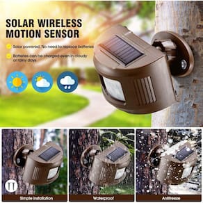 - Extremamente confiável e à prova d'água - o sensor de movimento externo é um design totalmente fechado à prova d'água (IP66). A faixa de temperatura operacional é de -20 °C a 60 °C. O sistema de sensor de alerta de entrada de garagem ao ar livre é feito com invólucro de PVC de nível industrial, vedação emborrachada resistente a intempéries/água e funciona em um recarregável solar.