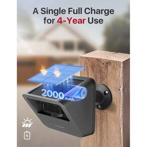 Energia solar ininterrupta: alimentada por energia solar e contém uma bateria recarregável selada de 2.000 mAh, garantindo energia ininterrupta; mantém uma vida útil da bateria de 3 a 4 anos quando totalmente carregada (ativada 20 vezes ao dia); suporta carregamento solar e USB