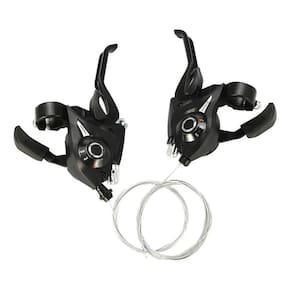 Conteúdo da embalagem: 01 alavanca lado esquerdo para 3 roda dentada coroa com cabo de cambio dianteiro 01 alavanca lado direito para 7 marchas com cabo cambio traseiro Cor: preto Composição: alumínio, aço, pvc Preço refente ao par não vendemos individualmente Marca: Ez-Fire Ean: 6927116141134