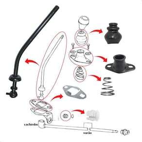 01 - alavanca de câmbio ferro 01 - cúpula da alavanca 01 - chapa guia da ré 01 - mola da alavanca 01 - coifa guarda pó 01 - bucha do varão
