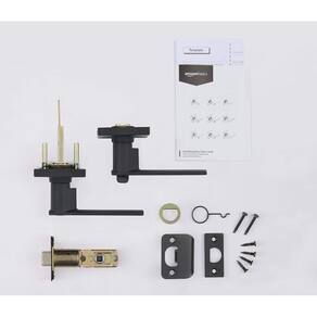 Amazon Basics Maçaneta de porta Stamford contemporânea - privacidade - preto fosco, pacote com 1 - Fácil instalação com chave de fenda Phillips padrão - Alavanca totalmente reversível; pode ser instalada em portas destros e canhotos - Serve para todas as portas de 3,5 cm a 4,5 cm de espessura - Trava ajustável de 6 vias para caber em qualquer encosto de 6 ou 6 cm - Segurança certificada de grau 3 pela ANSI/BHMA