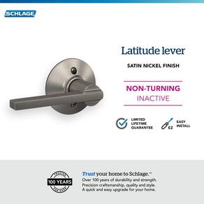 Schlage Alavanca de porta F170 LAT 619 Latitude, maçaneta falsa unilateral que não gira, níquel acetinado
