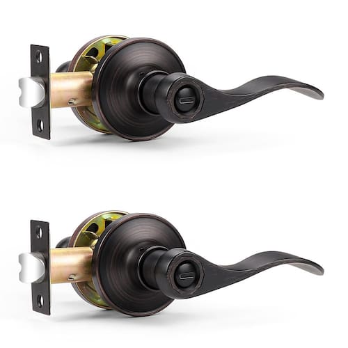Compromisso da Probrico: * A Probrico estabeleceu a crença de fornecer o mais alto nível de segurança para residências e empresas. Instale um Probrico e você instalará dedicação à segurança, qualidade e inovação. * A Probrico está comprometida em fornecer o produto mais econômico, serviços profissionais a todos os clientes. Com a Probrico, você vai viver uma vida mais aconchegante - ?Privacidade?2 maçanetas de porta de privacidade sem chave para duas portas. Pode ser travado/desbloqueado com o giro do polegar por dentro ou com uma ferramenta de emergência como uma moeda de fora. A maçaneta da porta de privacidade é adequada para banheiro, quarto ou quarto de hóspedes onde a privacidade é necessária. - ?Design elegante?A maçaneta de porta de bronze polido a óleo é requintadamente projetada em um estilo moderno. A forma de onda proporciona uma experiência de aderência mais confortável. A liga de zinco de alta qualidade torna a alavanca resistente ao desgaste, à corrosão e durável. Confirmado com ANSI Grau 3, excede 250.000 ciclos. - ?Alavancas reversíveis?A alavanca de porta sem chave serve para portas destros e canhotos. A alavanca interna pode ser removida da roseta e trocada com a alavanca externa. - ?Dimensões?Comprimento da alavanca: 4,7" (120 mm); Diâmetro da roseta: 2,56" (65 mm); Fundo ajustável: 2-3/20.3 cm ou 2-3/10.2 cm (60 mm ou 70 mm); Espessura da porta: 1-3/20.3 cm a 1-3/10.2 cm (35 mm a 45 mm). A placa quadrada da trava não é removível. - ?Fácil instalação?A maçaneta da porta pode ser facilmente instalada em minutos com uma chave de fenda. O pacote inclui todos os acessórios necessários e as instruções podem ser como modelo.