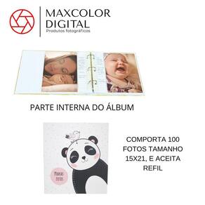 100 fotos 15x21cm – duas fotos por página, com memo central Suporta: 4 fotos por folha no tamanho 15x21 (1 frente e 1 verso) Aceita refil.