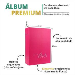 um dos grandes benefícios da laminação fosca é oferecer impermeabilidade e resistência. Outro grande benefício é que, por proporcionar um toque aveludado ao impresso, minimiza as marcas de gordura dos dedos na capa dos álbuns. Parte interna com folhas de plásticos rebitados para inserir as fotos da medida 10x15 tem capacidade para até 512 fotos 10x15 4 fotos por página possui memo central para descrição das suas fotos
