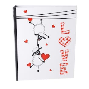 Feito com capa de papelão, folhas de polipropileno e miolo colado, suporta 4 fotos por folha.